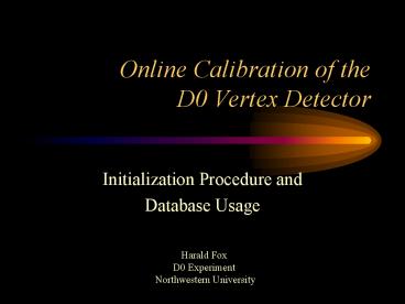 Harald Fox D0 Experiment Northwestern University