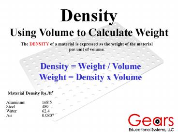Density Using Volume to Calculate Weight