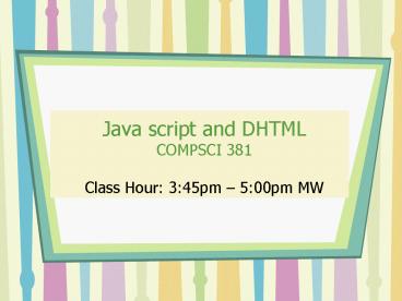 Title: Java script and DHTML COMPSCI 381 Class Hour: 3:45pm