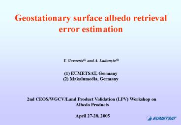 Govaerts, Y.M. Clerici, M. Clerbaux, N.,