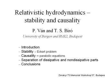 1Relativistic hydrodynamics stability and