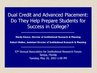 pre-college work in Missouri. - Findings tend to indicate that dual credit,