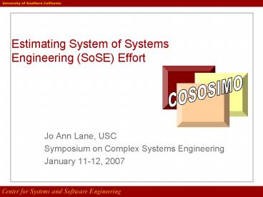 <Notice: Removed> Estimating System of Systems Engineering (SoSE) Effort PowerPoint PPT Presentation