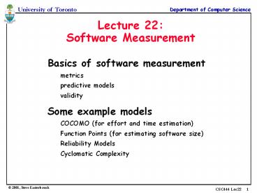 <Notice: Removed> Lecture 22: Software Measurement PowerPoint PPT Presentation