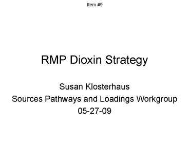 FIVE YEAR PLAN FOR RMP DIOXIN WORK
