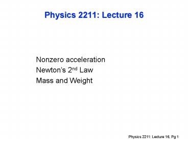 Title: Physics 2211: Lecture 16