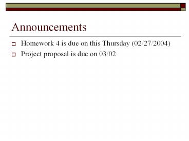 - Homework 4 is due on this Thursday (02/27/2004)