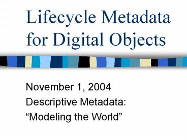 Lifecycle Metadata for Digital Objects PowerPoint PPT Presentation
