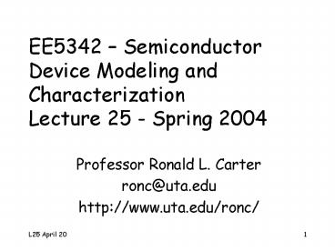 1EE5342 Semiconductor Device Modeling and