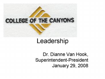 - Dr. Dianne Van Hook, Superintendent-PresidentJanu
