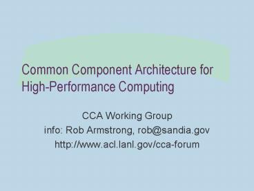 <Notice: Removed> Common Component Architecture for High-Performance Computing PowerPoint PPT Presentation