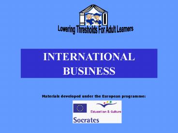 INTERNATIONAL BUSINESS International Trade