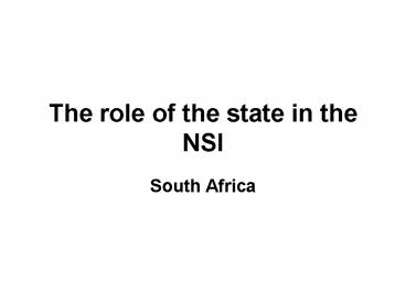 1The role of the state in the NSI