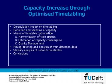 Title: Capacity Increase through Optimised Timetabling