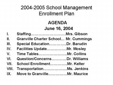 20042005 School Management Enrollment Plan PowerPoint PPT Presentation