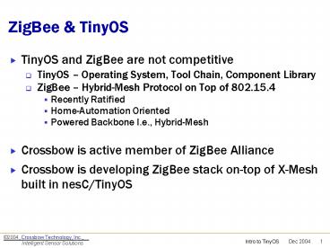 - Crossbow is active member of ZigBee Alliance