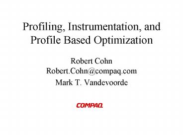 Title: Profiling, Instrumentation, and Profile Based Optimization