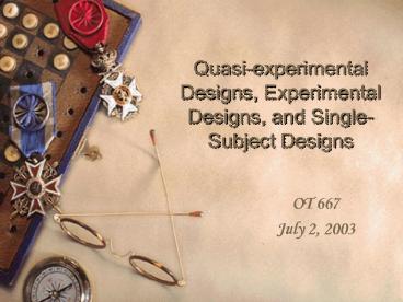 Title: Quasiexperimental Designs, Experimental Designs, and SingleSubject Designs