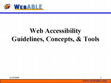 1Web AccessibilityGuidelines, Concepts, Tools