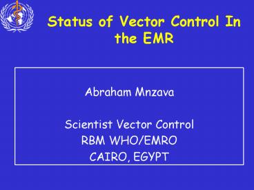 Title: Status of Vector Control In the EMR