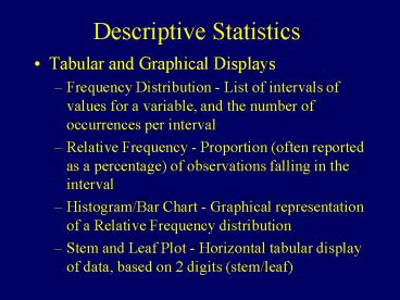 a Relative Frequency distribution - Stem and Leaf Plot - Horizontal tabular display