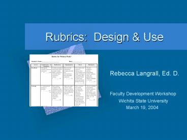 Workshops, June 22, 2003. Available on line at - http//www.eas.asu.edu/assess/ppt/Rubrics20wors