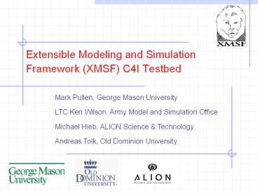 <Notice: Removed> Extensible Modeling and Simulation Framework XMSF C4I Testbed PowerPoint PPT Presentation