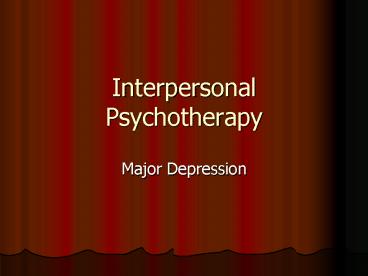 Interpersonal Psychotherapy PowerPoint PPT Presentation