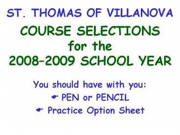 COURSE SELECTIONSfor the20082009 SCHOOL YEAR
