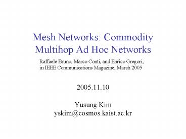 Title: Mesh Networks: Commodity Multihop Ad Hoc Networks