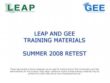1LEAP AND GEE TRAINING MATERIALS SUMMER 2008