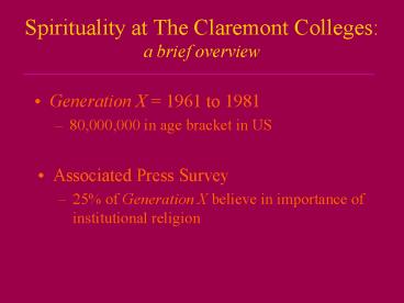 Title: Spirituality at The Claremont Colleges: a brief overview