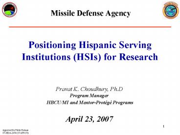 Missile Defense Agency PowerPoint PPT Presentation