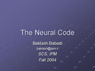 Title: The Neural Code