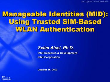 Title: Manageable Identities MID: Using Trusted SIMBased WLAN Authentication