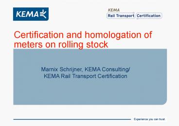 13and KEMA Rail Transport Certification