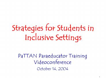 Title: Strategies for Students in Inclusive Settings