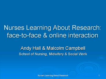 Title: Nurses Learning About Research: facetoface