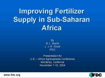 Title: Improving Fertilizer Supply in SubSaharan Africa