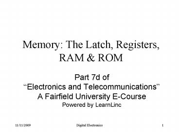 Memory: The Latch, Registers, RAM PowerPoint PPT Presentation