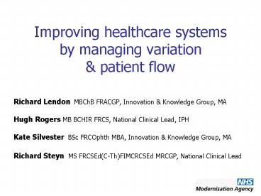 Lead, IPH - Kate Silvester BSc FRCOphth MBA, Innovation