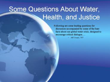 1Some Questions About Water, Health, and Justice