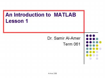 Title: An Introduction to MATLAB Lesson 1