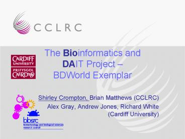 The Bioinformatics and DAIT Project BDWorld Exemplar PowerPoint PPT Presentation