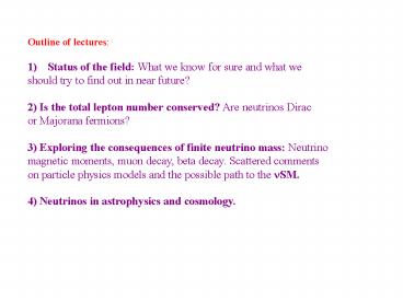 to the nSM. - 4) Neutrinos in astrophysics and cosmology.
