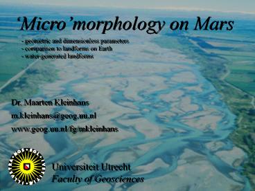 Dr. Maarten Kleinhans m.kleinhans_at_geog.uu.nl www.g