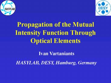 Title: Propagation of the Mutual Intensity Function Through Optical Elements