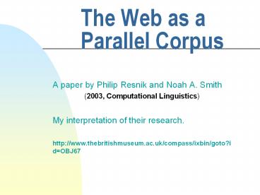 The Web as a Parallel Corpus PowerPoint PPT Presentation