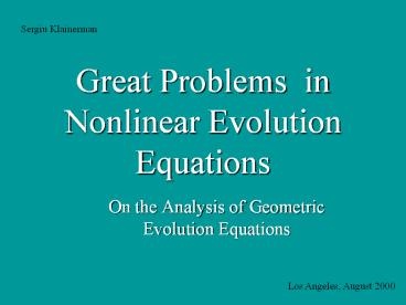 <Notice: Removed> Great Problems in Nonlinear Evolution Equations PowerPoint PPT Presentation