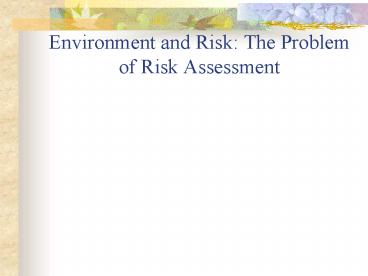Title: Environment and Risk: The Problem of Risk Assessment